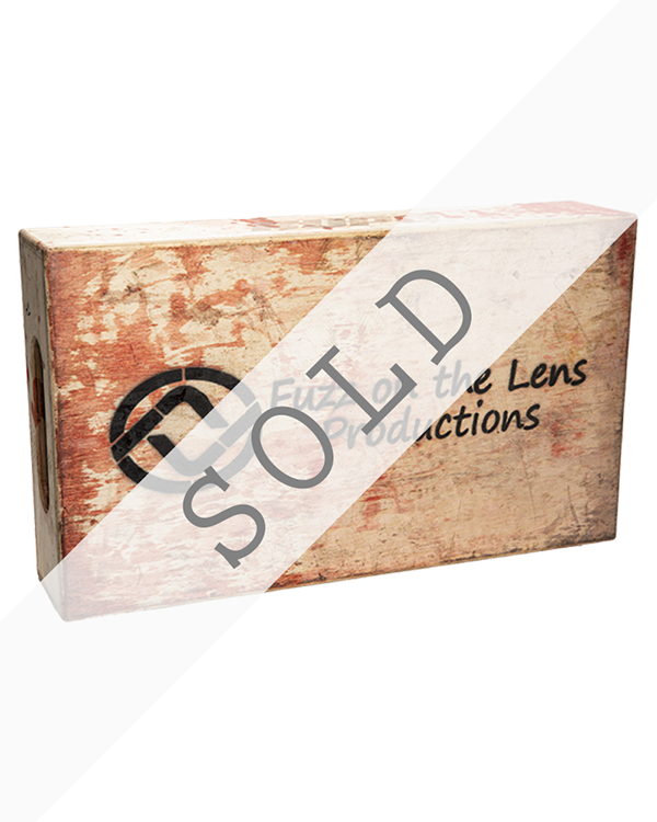 This half sized apple box (or as we in the industry call it, this “half apple”) was used during all of our recent productions, including Terrifier 3, STREAM, Screamboat and The Pitchfork Retreat. Although the nickname may not be very creative, it is an extremely unique piece of cinema history while also serving as a creative way to display your horror memorabilia. Only five of each size exist, with no two looking alike, and no more becoming available.
